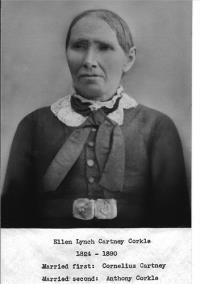 Elizabeth Ellen Lynch was born in 1824 in County Cavan, Ireland.1 Nicholas Cartney and she were married on 30 December 1842 in Enagh, Parish of Mullagh, County Cavan, Ireland.2 Anthony Corkle and she were married on 27 February 1854 in Carlyle, Clinton, Illinois.3 Joseph Lewellyn and she were married in January 1877. She died on 12 April 1890 at age ~66 in Madison Co, Neb.1 She was buried at St. Patrick's Cemetery in Battle Creek, Madison, Nebraska.4 Elizabeth Ellen Lynch had person sources.3 Anthony Corkle and she appeared in the census on 8 June 1860 in Carlyle, Clinton, Illinois.5 Anthony Corkle and she appeared in the census on 14 July 1870 in Madison Co, Neb.6 Joseph Lewellyn and she appeared in the census in 1880 in Elm Grove, Antelope Co., Nebraska. She appeared in the census in 1885 in Burnett Township, Antelope, Nebraska.7