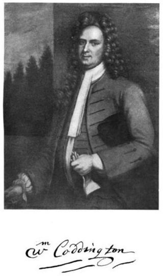 William Coddington was born in 1601 in Boston, Lincolnshire.1 He and Ann Brinley were married BY ABT 1650.2,1 He was buried on 6 November 1678 in Newport, Newport, Rhode Island.1 William Coddington had person sources.2,1 He immigrated in March 1630 to Massachusetts onboard "Arbella."2