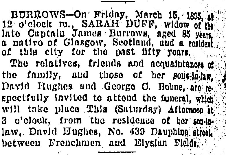 Sarah Duff Burrows Obituary